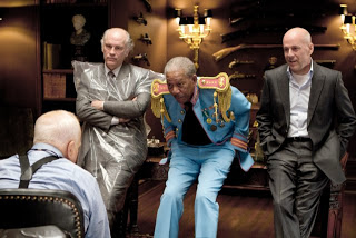 Red is loosely based on a DC comic miniseries and is stands for the acronym of "Retired, Extremely Dangerous." That's the final label stamp put on the files of retired government agents, like Bruce Willis's Frank Moses, Morgan Freeman's Joe Matheson, John Malkovich's Marvin Boggs, and Helen Mirren's Victoria. Former associates, each of them has adjusted to retired life differently. Frank lives with rote routine while attempting to flirt with his Social Security customer service associate (Mary Louise-Parker of TV's Weeds) over the phone on the other side of the country. Joe is living in a retirement home terminally ill with cancer. Marvin is a paranoid wacko (naturally, come on, it's Malkovich) living in a bunker off the grid. Finally, Victoria lives the lavish country mansion lifestyle.