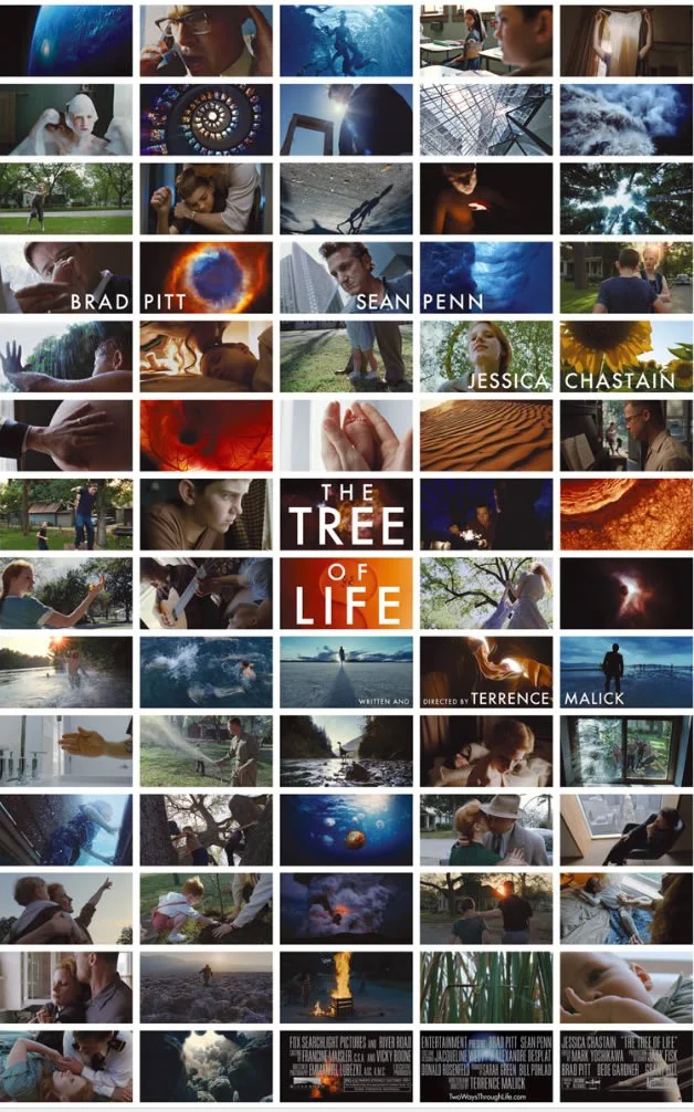 If you want a shorter explanation and visualization of how it feels to sit through The Tree of Life, take it's lobby poster, a collection of the film's images. Display each one of the pictures, slowly with subtle PhotoStory/PowerPoint animated movement, put some classical music on, and then read the Book of Job for nearly three hours. Even shorter, if you want the movie in 15 seconds, stack those images and flick them like an old-school flip book. That's it. That's also as much you learn.