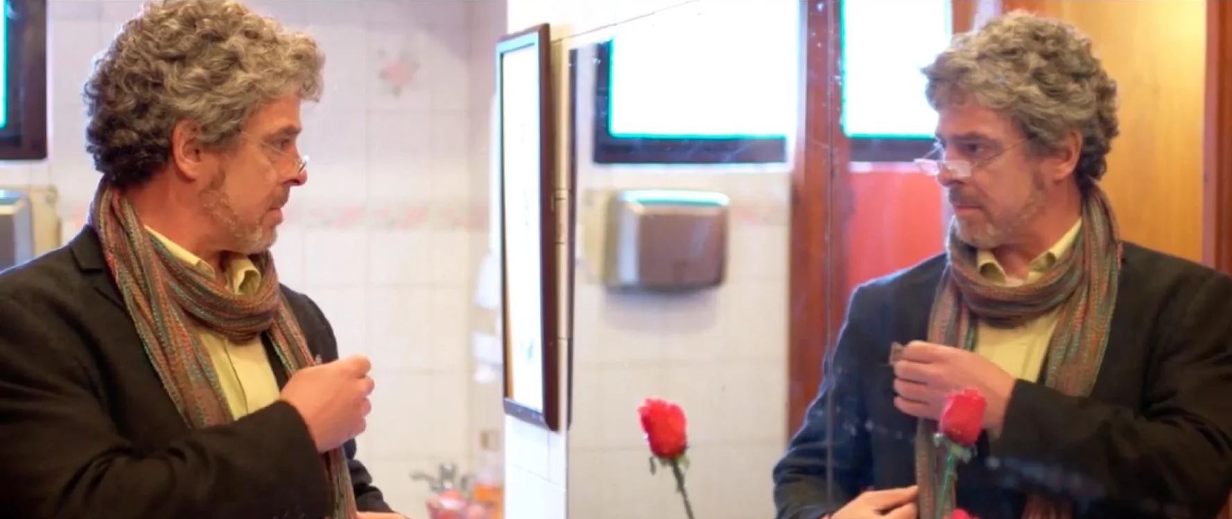 In short order, Joseph gains a pudgy and messy flatmate named David (Aidan Crowe), very much an opposite to the Joseph we’ve met. When Joseph leaves for the day with a conspicuous pink rolling suitcase, he peels himself away from sidewalk view. He changes from laborer’s clothes to finer threads, astute glasses, and puts on a wedding band. When David goes looking into where Joseph spends his days, he (and us) learns a few painful truths.