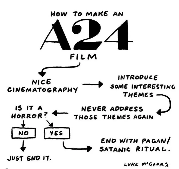 Mulling over the complex totality of The Green Knight and how it portrays the 14th-century Sir Gawain and the Green Knight, the befuddling result comes down, equally so for the main character’s quest, to choices. Much like A Ghost Story and other A24 critical darlings, extrapolating the method within the madness or untangling the greater reasoning requires its own study hall in a large library and therapy session stretched out on a leather couch. Lo and behold, leave it to a comedic Instagram post from cartoonist Luke McGarry with a flowchart to streamline the perceived thought process better than I ever could with double the number of words of this review.
