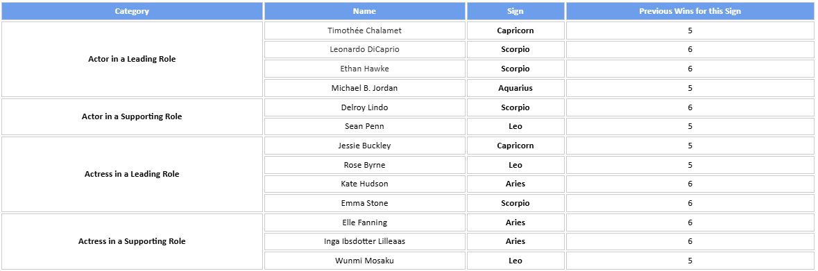 INFOGRAPHIC: Astrologer Predicts This Year’s Oscar Winners in Every Category