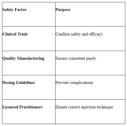 The FDA approval process makes botulum toxin products are of high safety, effectiveness, and manufacturing standards.